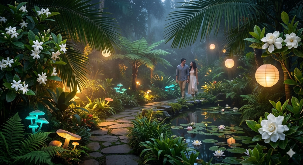 A Magia do Jardim Tropical Noturno: Aromas e Visual